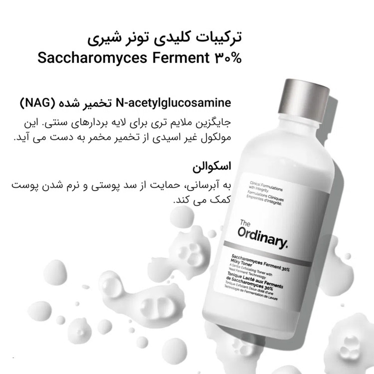 بهبود درخشندگی پوست خود را با تونر شیری ساکارومایسز تخمیری ۳۰% اوردینری تجربه کنید.